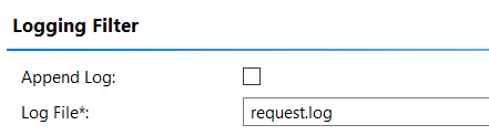 Next, from Server Config Bean, navigate to the Server Components > Http Dispatcher > Servlet Filters > Logging Filter node and remove the path from Log File. The new value should be only